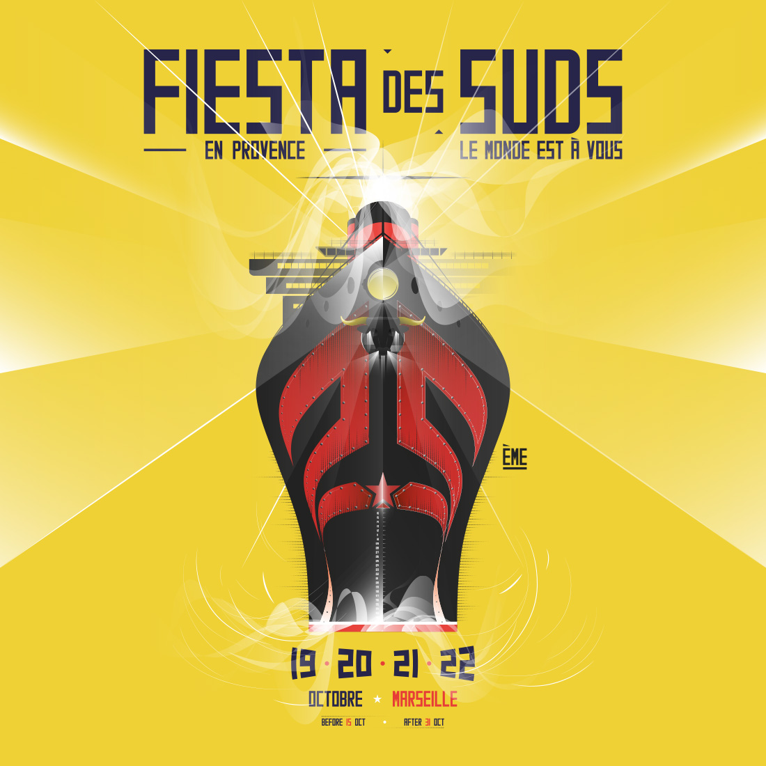 Vascello delle calde notti autunnali marsigliesi, la FIESTA DES SUDS celebra la sua 25esima edizione, dal 9 al 22 ottobre 2016, per un odissea festiva fuori dal comune, fedele alla sua grande tradizione. Dal 1992 questo festival globale, diventato imprescindibile, fa sfilare tutte le culture del mondo mescolando tutti i tipi di pubblico nella sua atmosfera portuairia ribollente e popolare.