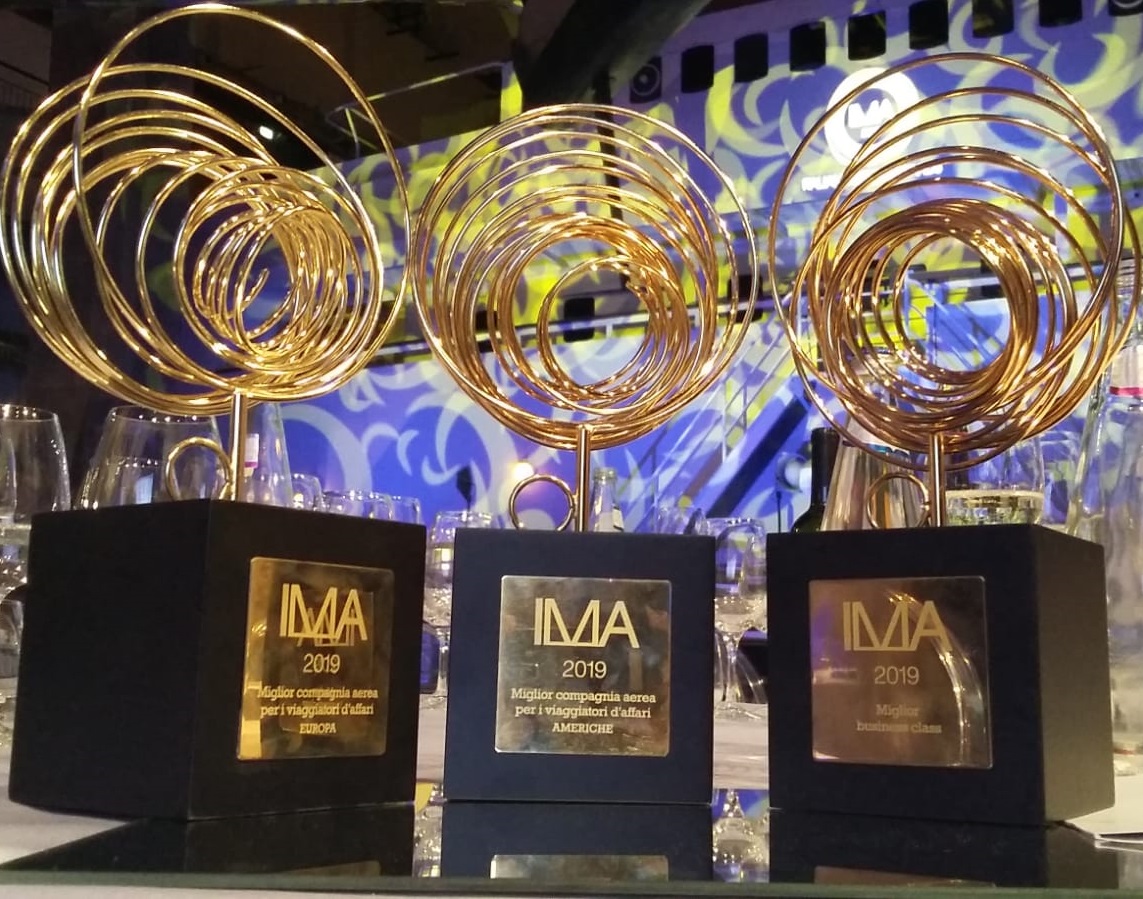 Nel corso della cerimonia degli IMA 2019, che si è svolta ieri sera a Milano, Alitalia ha ricevuto tre riconoscimenti quale “Migliore business class”, “Migliore compagnia aerea per i viaggiatori d’affari – rotte verso l’Europa” e “Migliore compagnia aerea per i viaggiatori d’affari – rotte verso le Americhe”.